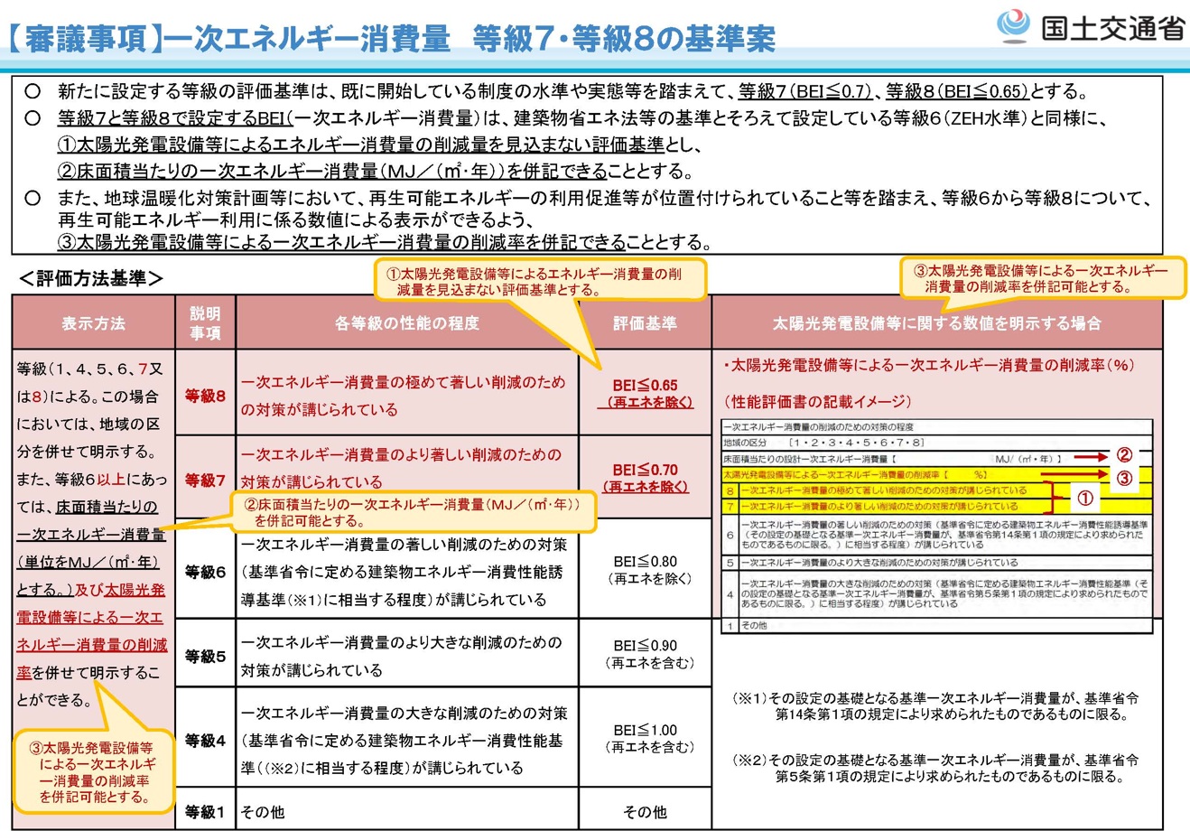 これまで最高だった「等級6(ZEH水準)」に加え、等級7(BEI≦0.70)と等級8(BEI≦0.65)が
