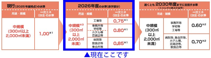 2026年4月より、中規模非住宅建築物における省エネ基準が引上げられました。
